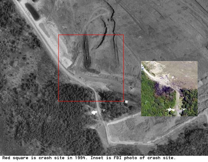 Why were the "wing marks" already there in the 1994 US Geological Survey photo (black & white) precisely where Flight 93 crashed (color photo) in Shanksville Penn.? Why don't we see a lot of plane parts, as with other crashes? Was Flight 93 shot down? If the Remote Control of navigation was failing, was it blown up by remote control? Was it intended to hit WTC 7? |