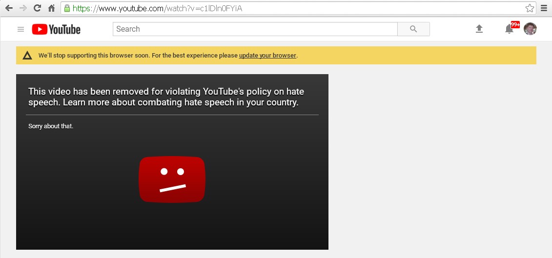 flagged as "hate speech". YouTube's algorith is anti-intellectual