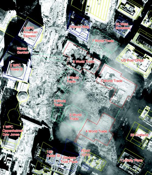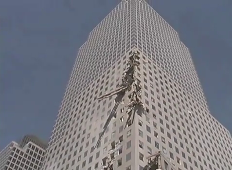 Steel girder from WTC 1 stuck in AmEx Building like a dart